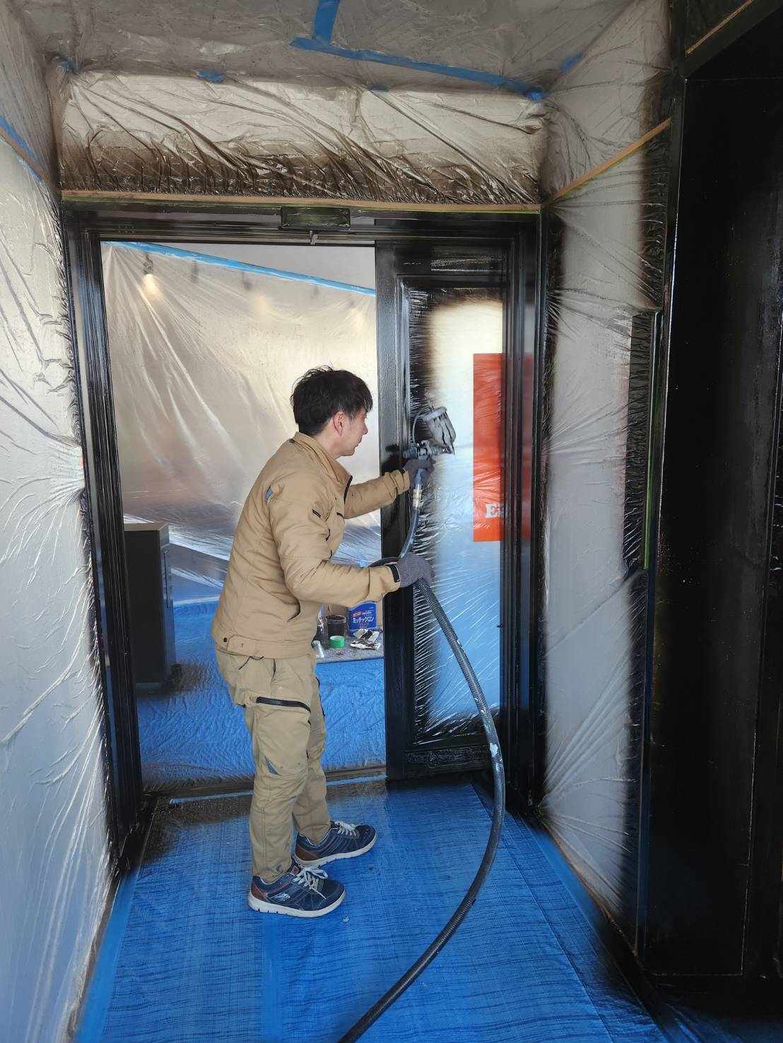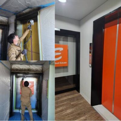 エイシン不動産様入り口自動ドア塗装工事